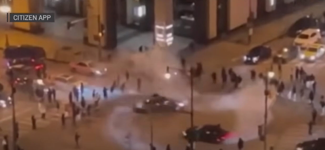 Chicago’s New Year’s Eve celebrations took a dangerous turn as revelers gave way to reckless drivers in a downtown “street takeover,” captured in a chilling video circulating online. The Citizen app footage shows a chaotic scene of cars spinning donuts, tires screeching, and smoke filling the air, casting a grim shadow over the festive mood.