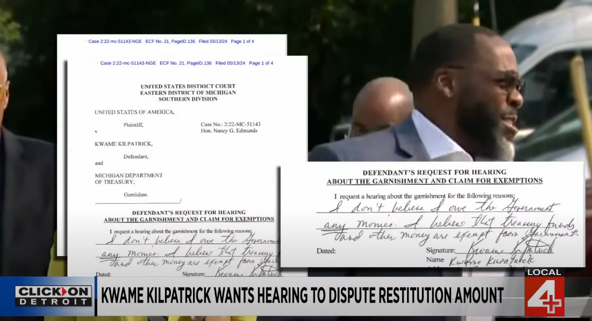 Former Detroit Mayor Kwame Kilpatrick is challenging federal efforts to collect $6,700 discovered by the Michigan Treasury Department as part of the restitution he owes. Kilpatrick disputes the federal claim to these funds, which are part of the broader attempt to recover over $824,000 he owes to the City of Detroit.