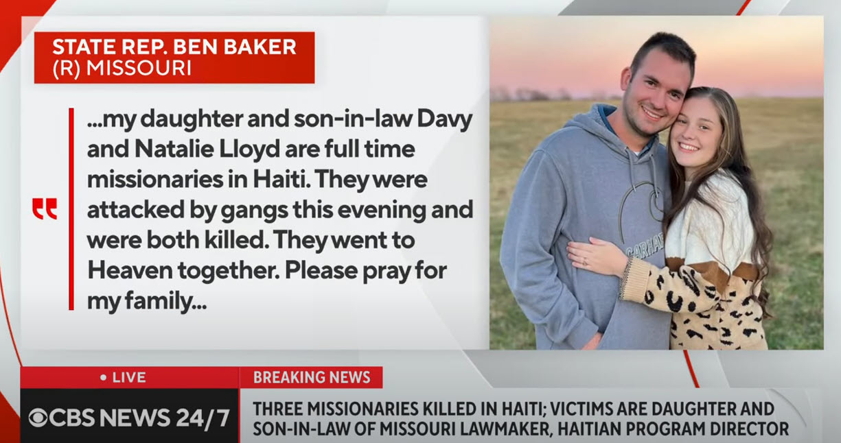 Three Missionaries Killed by Gangs in Haiti, MO Rep. Ben Baker Daughter & Son-in-law Among Dead