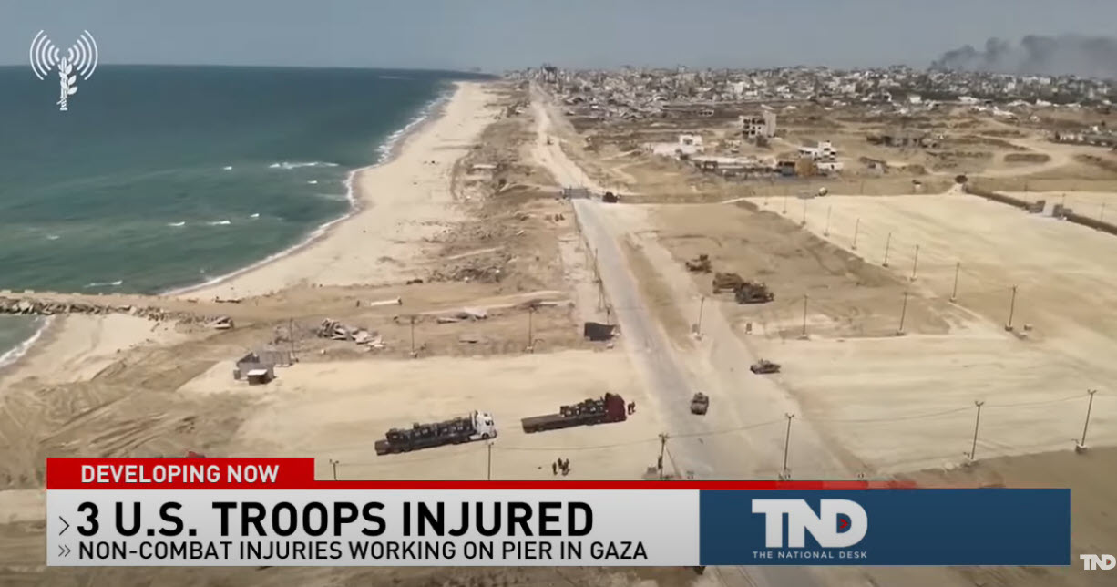 Three U.S. soldiers sustain injuries while working on the newly completed Gaza pier, marking the first such incident involving U.S. service members bringing humanitarian assistance to the area. The Pentagon reports that one of the soldiers’ injuries was serious enough to necessitate a medical evacuation to Israel.