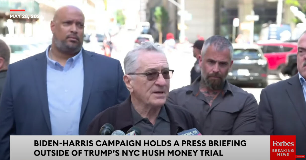 As closing arguments proceed in Donald Trump’s hush money trial in Manhattan, high-profile allies of President Joe Biden gather outside the courthouse to denounce the former president. Among the notable figures present are Capitol Police officers who were injured during the January 6th Capitol riot and actor Robert De Niro.