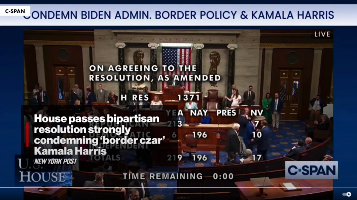 The House of Representatives has approved a resolution condemning Vice President Kamala Harris for what Republican lawmakers describe as her mishandling of the southern border. The resolution, which criticizes Harris’s role as the Biden administration’s “Border Czar,” passed with bipartisan support, including votes from six Democrats.
