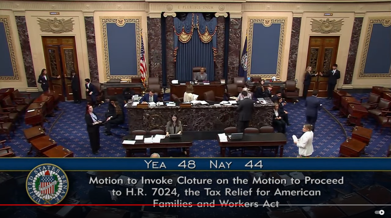 Senate Republicans have successfully blocked a tax package aimed at expanding the Child Tax Credit and extending several business tax credits. The bill, which required 60 votes to advance, fell short with a procedural vote of 48-44.