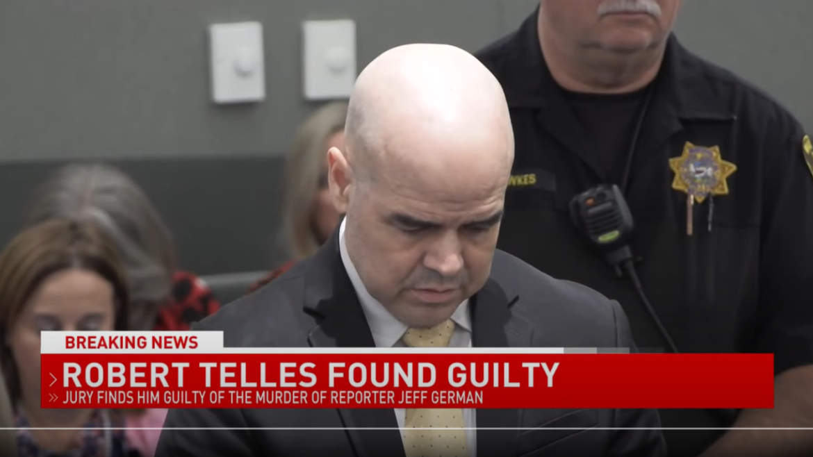 Former Nevada county public administrator Robert Telles has been found guilty of the murder of Las Vegas journalist Jeff German. A jury delivered the guilty verdict this afternoon, concluding that Telles killed the “Las Vegas Review-Journal” investigative reporter in September 2022 in retaliation for a series of negative articles German had written about him.