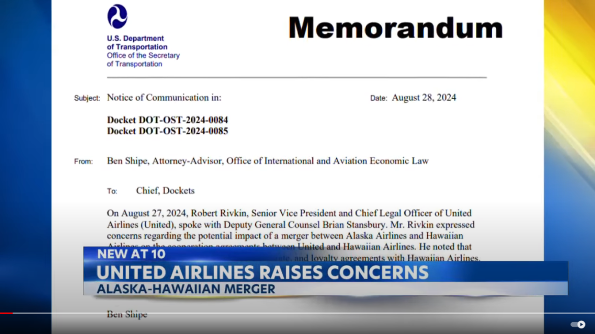United Airlines is raising concerns about the pending merger between Alaska Airlines and Hawaiian Airlines. Erin Real reports.