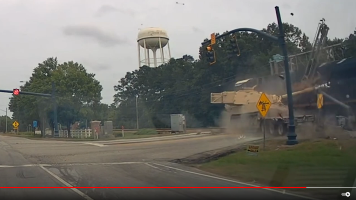 In a dramatic incident that has captured national attention, a freight train crashes into a $1.5 million US Army artillery vehicle in South Carolina. The collision, which was caught on camera, occurred during a routine military convoy operation near a rail crossing. The video, now widely circulated online, shows the moment when the fast-moving train slams into the stationary military vehicle, sending it spinning off the tracks and causing significant damage.
