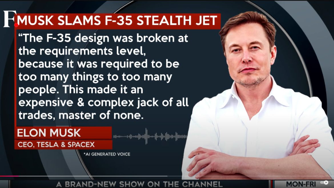 Tesla and SpaceX CEO Elon Musk stirs controversy by declaring the F-35 stealth fighter jet obsolete, claiming that the future of warfare lies in autonomous drones. Posting on his social media platform X, Musk criticizes the F-35’s design and utility, describing it as ill-suited for modern combat scenarios. The comments ignite heated debates among defense experts, military personnel, and technologists.