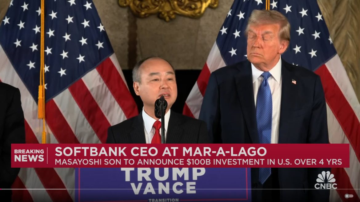 President-elect Donald Trump and Masayoshi Son, the CEO of Japanese tech giant SoftBank, make a joint announcement today from Trump’s Mar-a-Lago residence in Palm Beach, unveiling a massive $100 billion investment in the United States. The investment, aimed at bolstering technological innovation and infrastructure, is expected to create 100,000 new jobs in fields such as artificial intelligence and advanced infrastructure development.