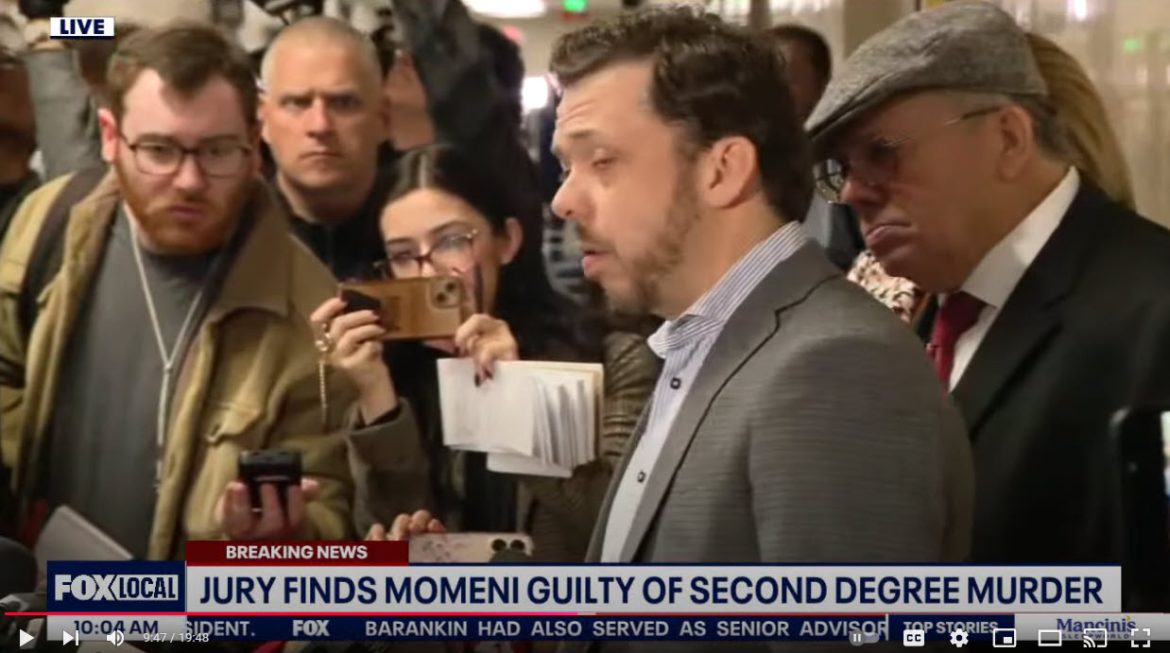 Throughout the trial, Momeni’s defense maintains the act was in self-defense, but the jury’s verdict rejects that argument. The second-degree murder conviction signifies the jury did not find premeditation but concluded Momeni’s actions were intentional and unlawful.