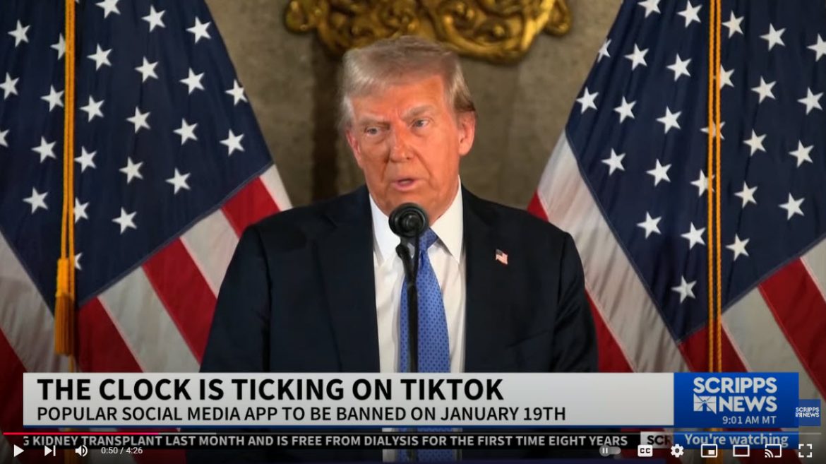 Meanwhile, President-elect Donald Trump is signaling that he may intervene in the TikTok ban. Speaking from his Mar-a-Lago estate in Palm Beach, Florida, on Monday, Trump acknowledges the platform’s role in reaching young voters during the November election, stating, “TikTok may be a big reason why we saw record support from the youth vote. Millions of people use it, and we can’t ignore its impact.”