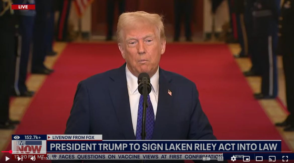 In his remarks before signing the Act, President Trump emphasized the importance of strengthening immigration enforcement to protect American citizens. He stated, “This law honors the memory of Laken Riley and ensures that no family has to endure the pain and loss that her loved ones have suffered.”