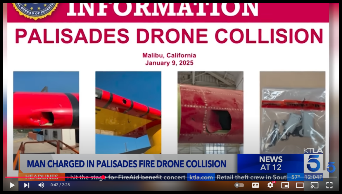According to federal prosecutors, Akemann launched his DJI Mini 3 Pro drone from Santa Monica’s Third Street Promenade, intending to capture footage of the wildfire. He piloted the drone beyond his line of sight, approximately 1.5 miles toward Pacific Palisades, where it struck the left wing of the firefighting aircraft, creating a 3-inch-by-6-inch hole. The damaged plane, operated by the Government of Quebec, was forced to land and was subsequently taken out of service for repairs, incurring costs exceeding $65,000.