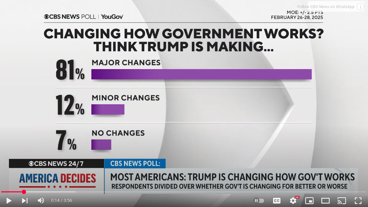 A new CBS News/YouGov poll reveals a sharp divide among Americans regarding Elon Musk and the Department of Government Efficiency (DOGE), as the agency continues its controversial mass firings of federal workers. The survey shows that 54% of respondents believe Musk and DOGE wield at least “some” influence over U.S. government spending and operations, while 46% say they have “not much” or no power at all. The poll also finds that just over half of those surveyed think Musk and DOGE are exerting too much control over federal employment decisions.