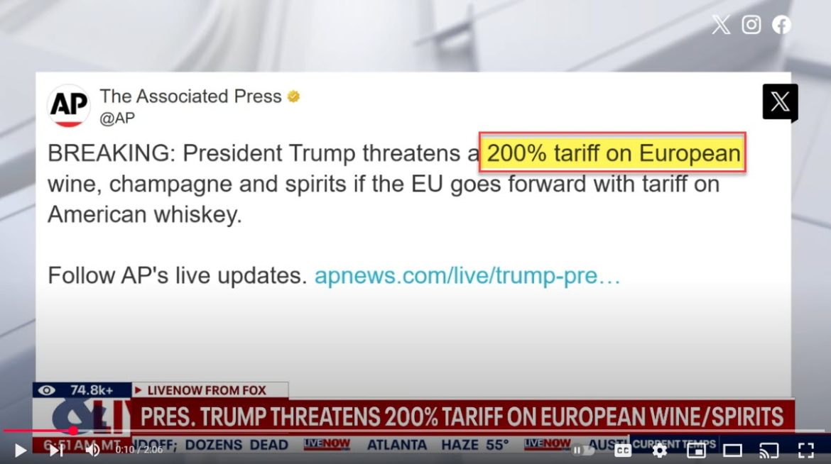 - Trump threatens 200% tariffs on EU champagne, other alcohol products