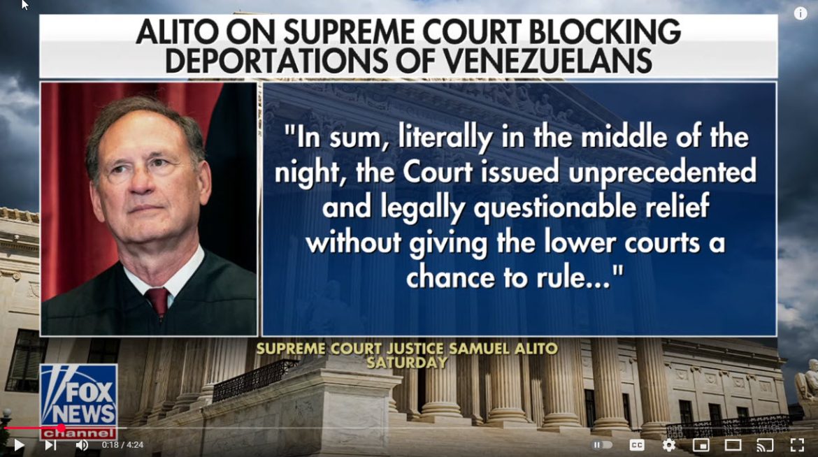 Supreme Court Justice Samuel Alito issues a rare and strongly worded dissent after the high court temporarily blocks deportation flights to El Salvador under the Alien Enemies Act, criticizing the majority for what he calls an “unprecedented” and “legally questionable” move that bypasses normal judicial process.